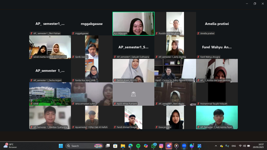 Fakultas Ilmu Sosial dan Ilmu Politik (FISIP) Universitas Muhammadiyah Bengkulu (UMB) kembali menunjukkan komitmennya dalam memperkuat wawasan global dan pengabdian masyarakat dengan menggelar Kuliah dengan tema “Resiliensi Komunitas Pesisir: Sinergi Sosial, Komunikasi, dan Kebijakan Publik di Era Perubahan Global” , Senin (29/9/2025).