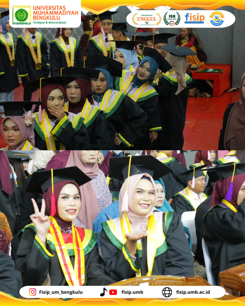 Bengkulu, 25 Oktober 2025 Sebanyak 103 wisudawan Fakultas Ilmu Sosial dan Ilmu Politik (FISIP) Universitas Muhammadiyah Bengkulu (UMB) resmi dikukuhkan sebagai sarjana dalam Wisuda Universitas Muhammadiyah Bengkulu Tahun 2025 yang berlangsung di Sportatorium UMB, Sabtu (25/10/2025).