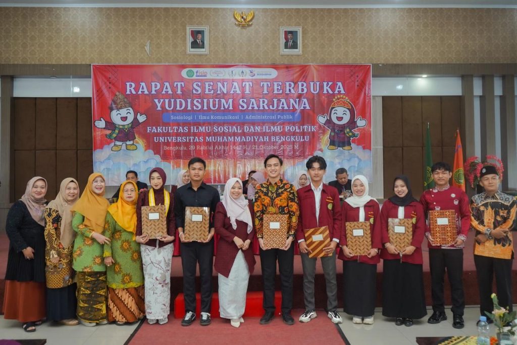 Bengkulu, 21 Oktober 2025 — Fakultas Ilmu Sosial dan Ilmu Politik (FISIP) Universitas Muhammadiyah Bengkulu kembali menunjukkan semangat dan kekompakannya melalui pelaksanaan Yudisium Periode Oktober 2025 yang digelar di Aula Hasandin, Kampus IV UM Bengkulu. Acara berlangsung meriah dan penuh suka cita, menjadi momen bersejarah bagi para lulusan yang resmi menyandang gelar sarjana setelah menempuh perjalanan panjang di bangku perkuliahan.